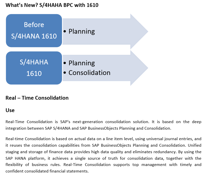 SAP has recently released S/4HANA 1610, it has released highly anticipated feature for SAP BPC Embedded i.e. “Real-Time Consolidation”. It is a huge step forward, and it will certainly help to increase the adoption rate of SAP BPC for S/4 HANA.