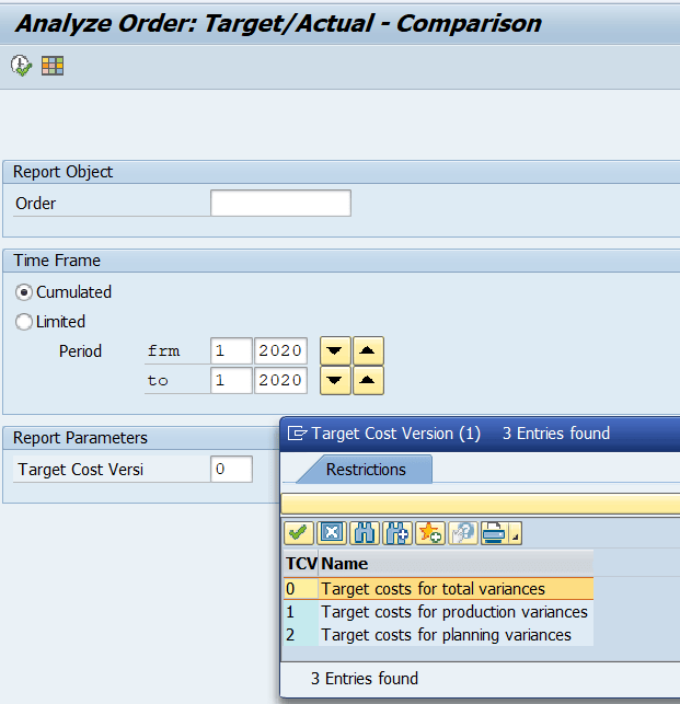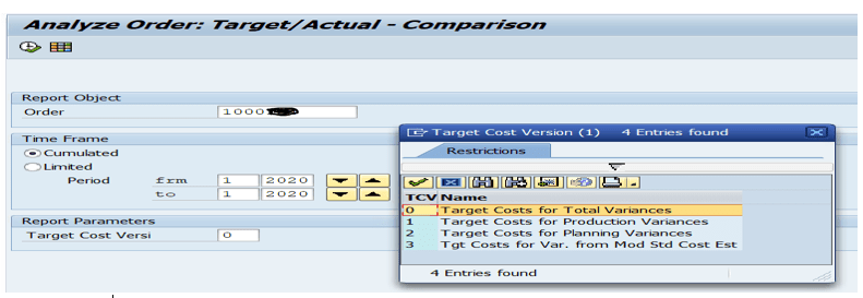 • With TCV 3 – Tgt.Cost for Var. from Mod. Std. Cost Est, if Prod.Ord is costed at std.cost.Est, then it shown, else ZERO values shown.