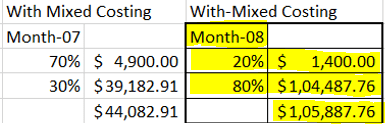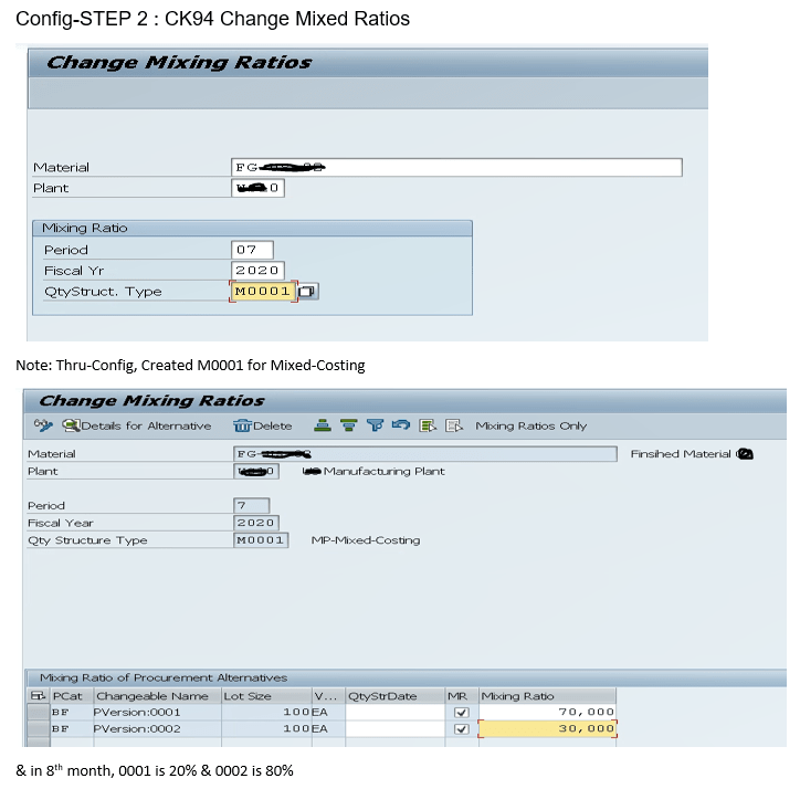 When we set-up MIXED-costing in SAP, example say for month-08, a monthly mix of 20% from Prod.Version 0001 & 80% from Prod 0002, then at that point of time system will calculate the cost of the Finished-prod. as follows