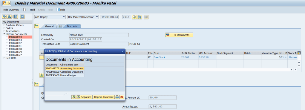 - e.g. The std. price in Material-Master is set to 2542.42 USD, However when uploading the MIGO stock-upload document is done with Price say 50$ USD, then a Price-Difference account is hit and additional line gets inserted into the Accounting-document.